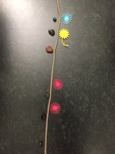 Legen einer Life-line: Blumen = positive Ereignisse, Steine = negative, Traumata
