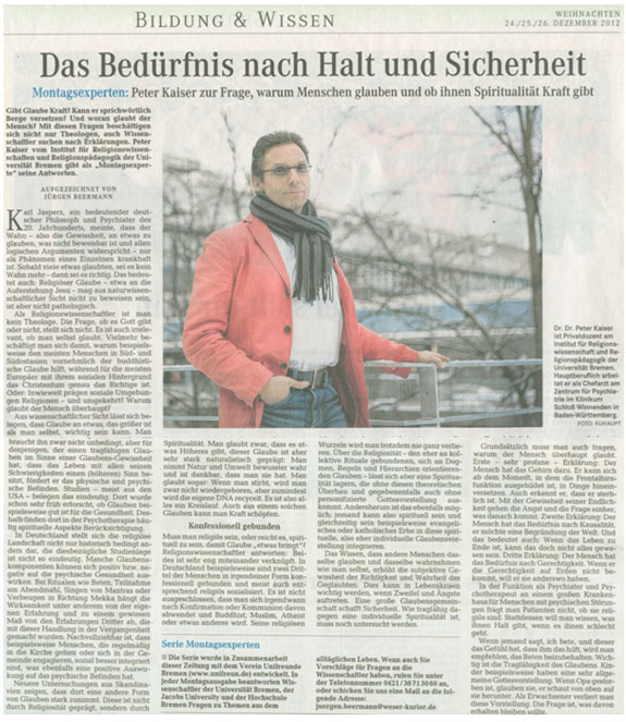 Offen sollten Religionswissenschaftler und Professionelle, welche mit unterschiedlichen Religiositäten von Menschen zu tun haben, sein, wenn es um die Frage geht, ob der jeweilige Glauben des Einzelnen oder einer Gruppe diesem resp. dieser hilft, mit den Herausforderungen, mit den Schicksalsschlägen, welche das Leben bereithält, so umzugehen, dass das hiermit verbundene Leiden reduziert wird.